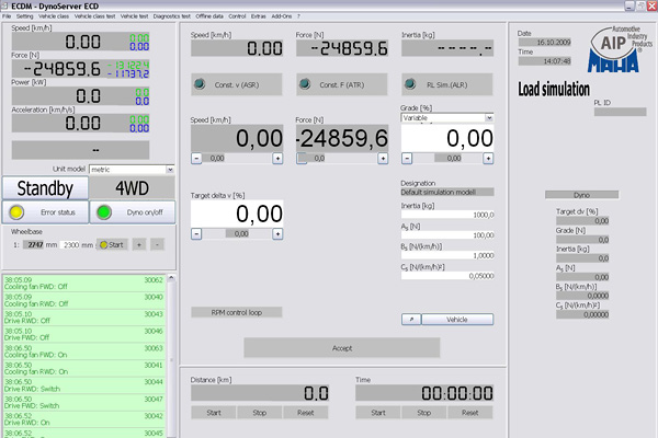 Rollensteuerungssoftware Modul DynoServer, inkl. Grundfunktionen (Konstant v, Konstant F, Straßen-Last-Simulation).