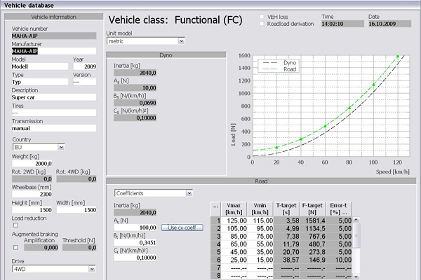Fahrzeugtests unter speziellen Straßenlast-Bedingungen. Die Straßenlast und die angepassten Prüfstandparameter werden bestimmt durch Geschwindigkeit/Kraftpunkt, daraus ergibt sich über einen kubischen Spline die Fahrwiderstandskurve. GTR15 erlaubt auch dieses Verfahren! Für Fahrzeugtests ohne Leitsystem.