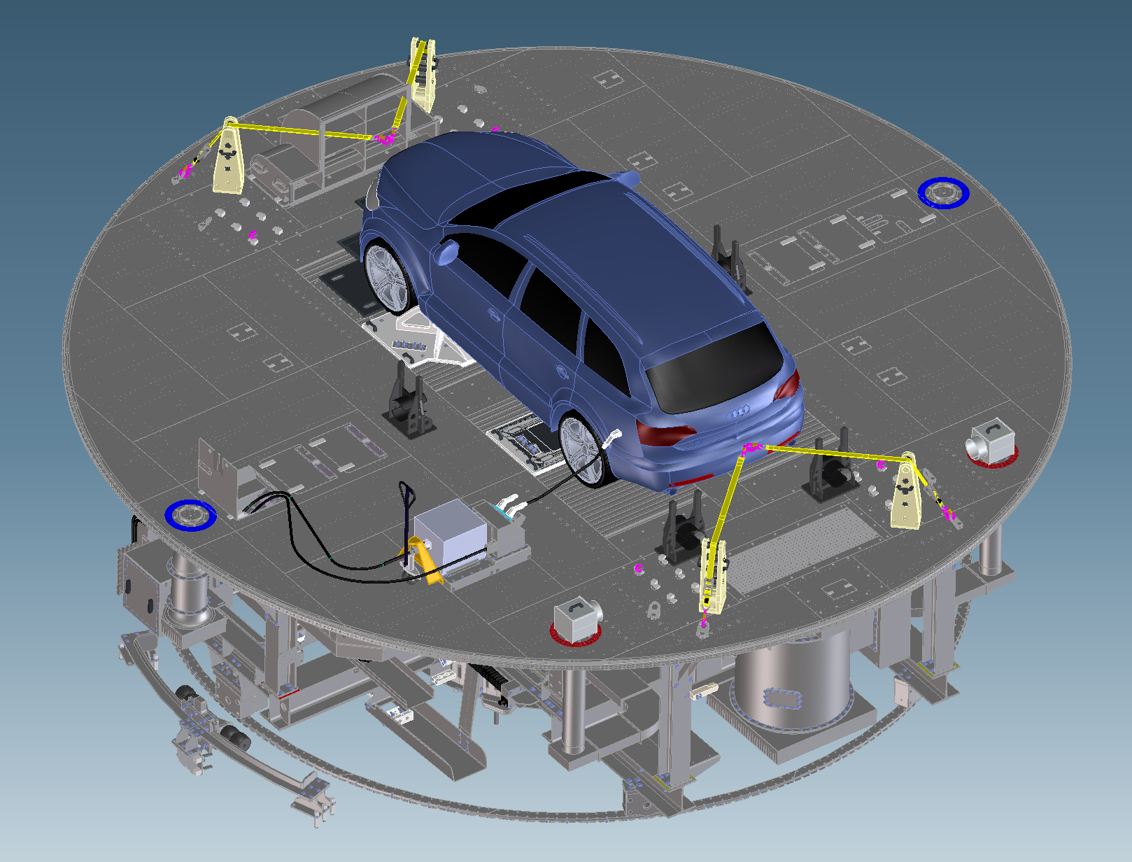 Batterieladesystem, integriert in einen EMV Prüfstand-Drehteller.