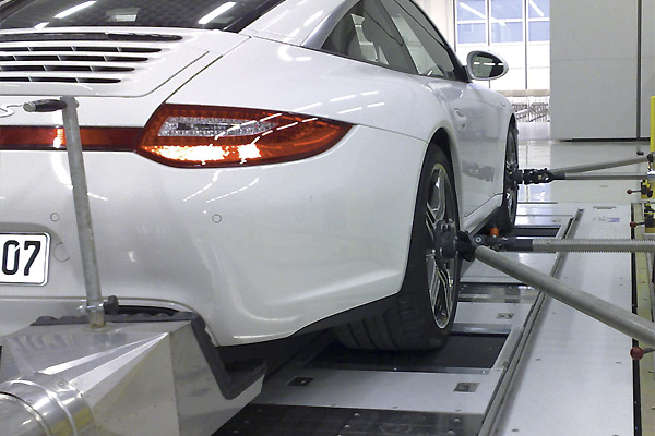 Front-, Heck-und 4-Rad-angetriebene Fahrzeuge können unter Last auf dem Rollenprüfstand reproduzierbar getestet werden (Straßenlastsimulation, Kraft, Geschwindigkeit, etc). Jede Rolle ist mit einem individuellen Antrieb ausgestattet.