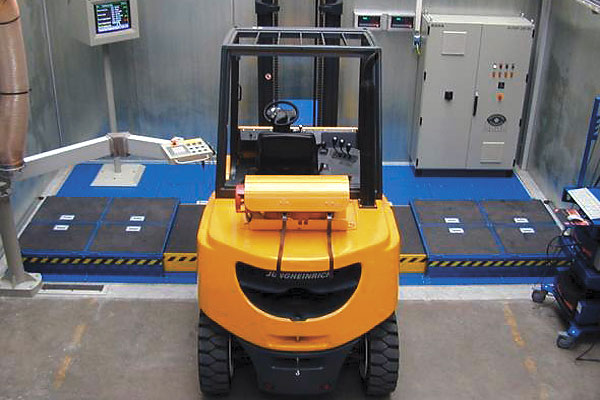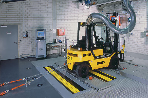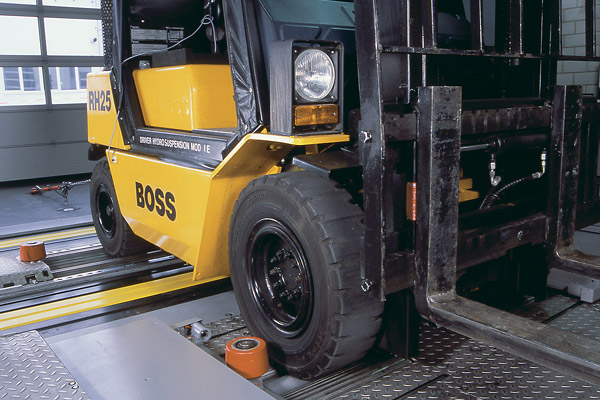 Kombinierter Brems- und Leistungs-Rollenprüfstand für verschiedenste Typ-, Funktions- und Qualitätsprüfungen von 3- bzw. 4-Rad-Gabelstaplern.